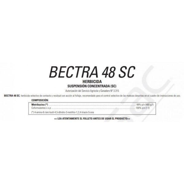 BECTRA 48 SC, herbicida suelo activo con acción al follaje, de contacto y residual, recomendado para el control selectivo de las malezas descritas en el cuadro de instrucciones de uso.